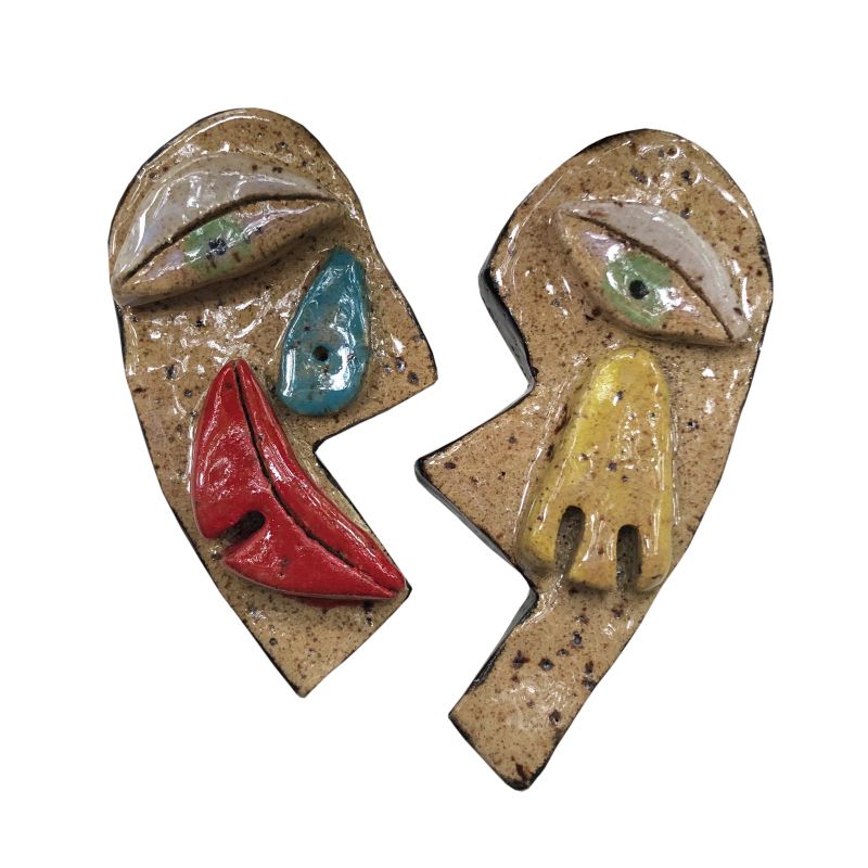 PORTA INCENSO DO CORAÇÃO PARTIDO E DESCARADO | FEITO DE CERÂMICA | ARGILA TABACCO | VIDRADO | PINTADO À MÃO | APROXIMADAMENTE 2 CM DE ALTURA | APROXIMADAMENTE 8 CM DE COMPRIMENTO